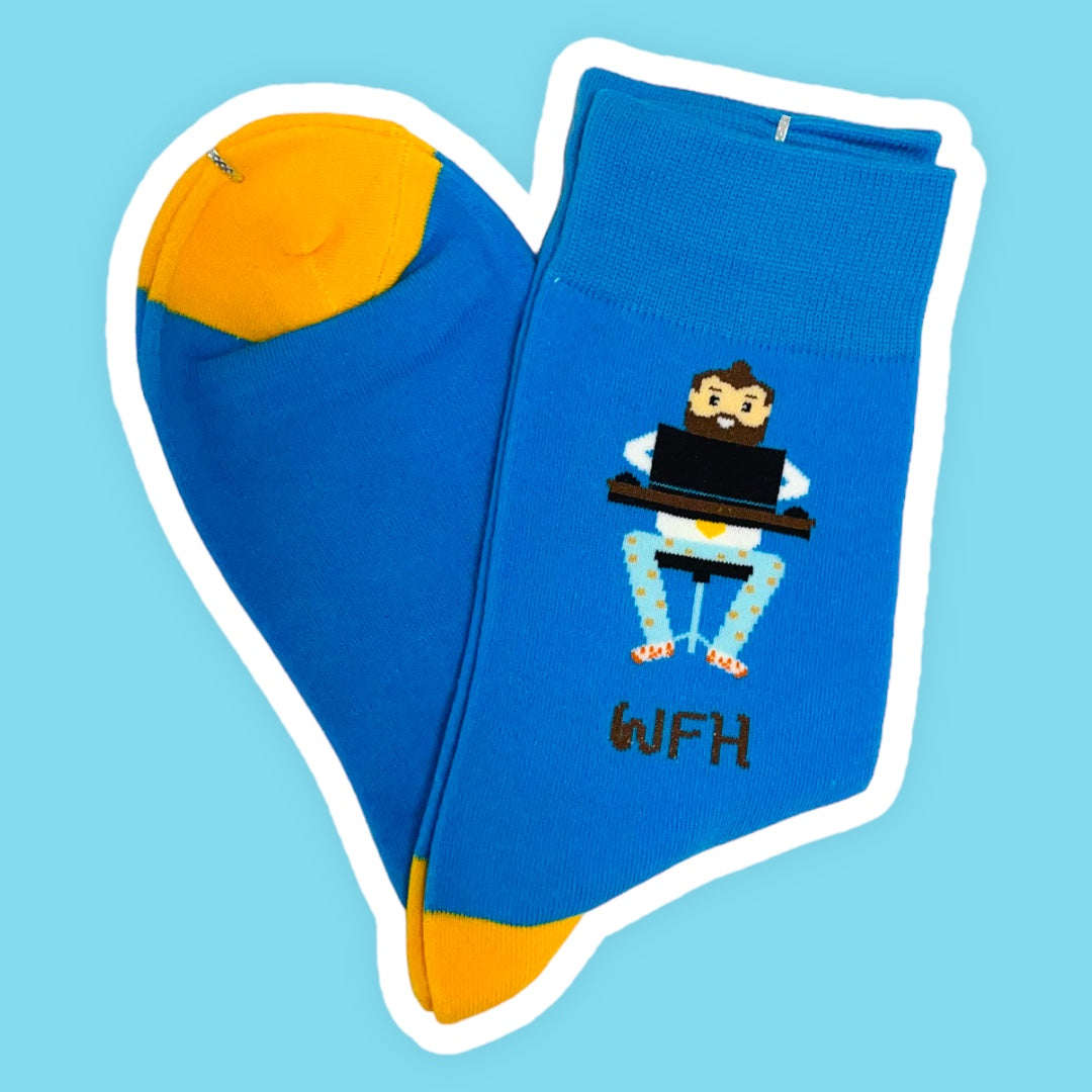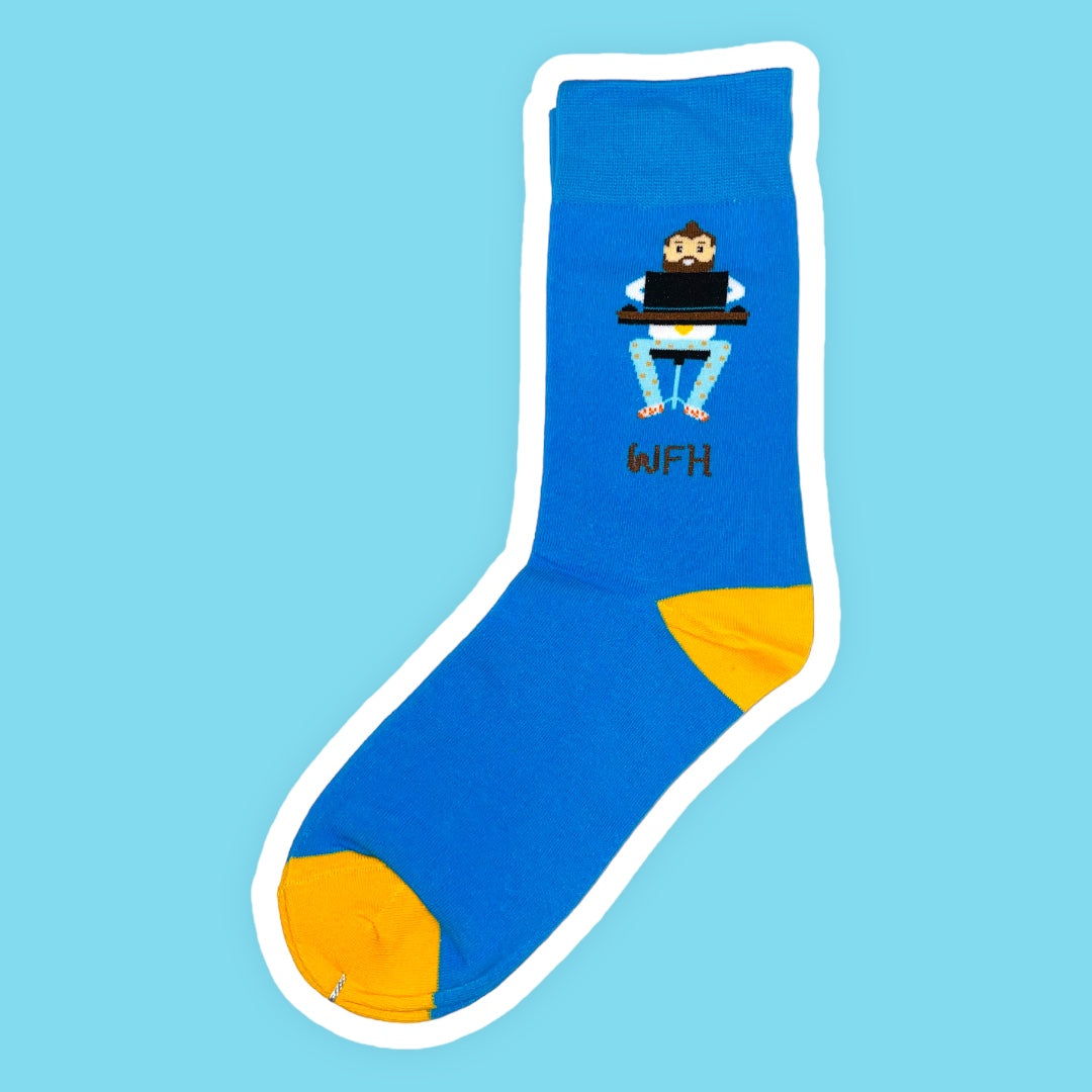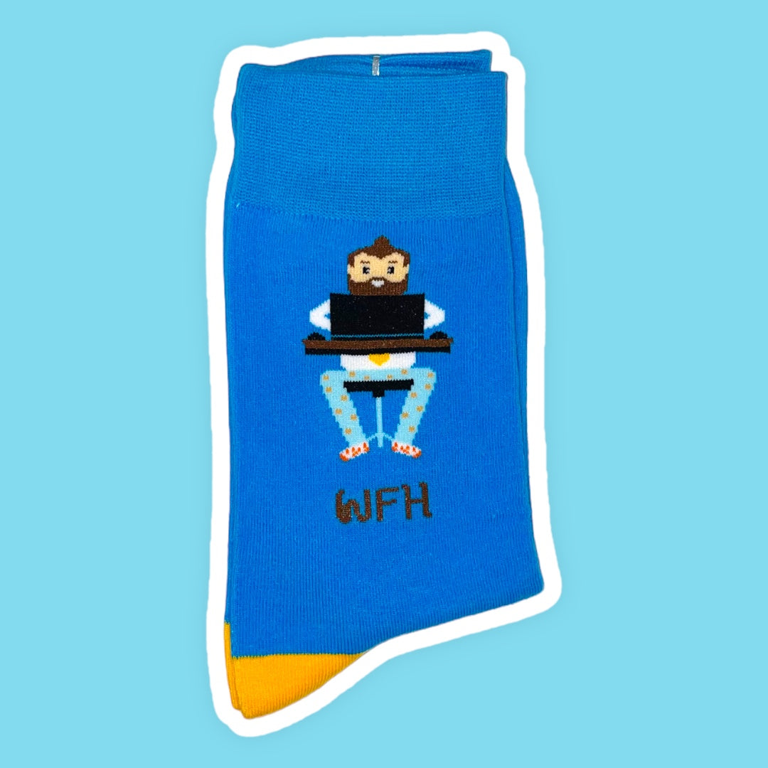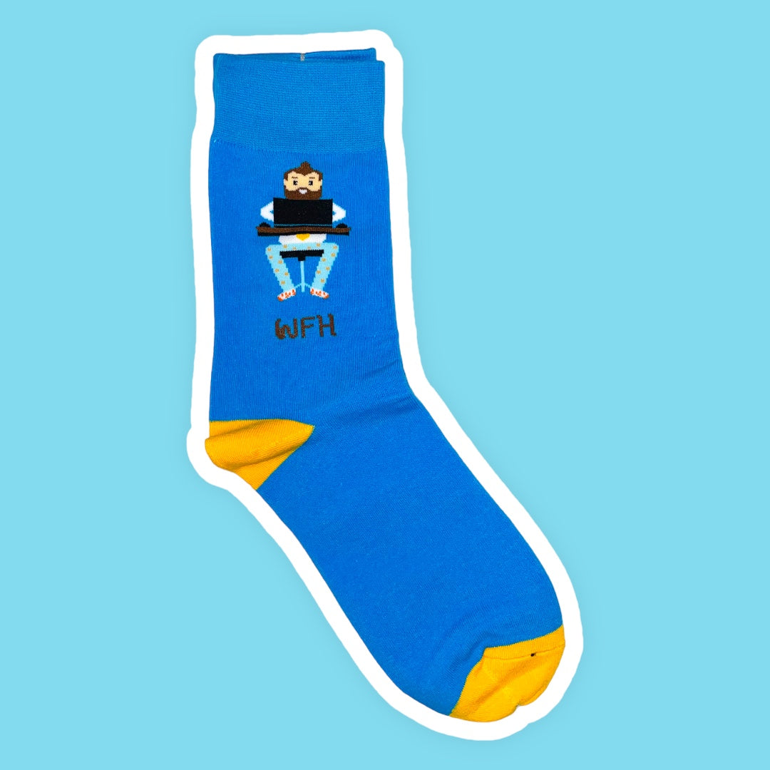 Introducing our Work-from-Home Warrior Socks! These socks celebrate the modern hero who conquers their workday from the comfort of their home office. Featuring a charming design of a dedicated individual at their desk, our socks pay tribute to the hardworking spirit that keeps us going. Whether you're juggling Zoom meetings or tackling your to-do list, our socks provide both comfort and motivation to get the job done